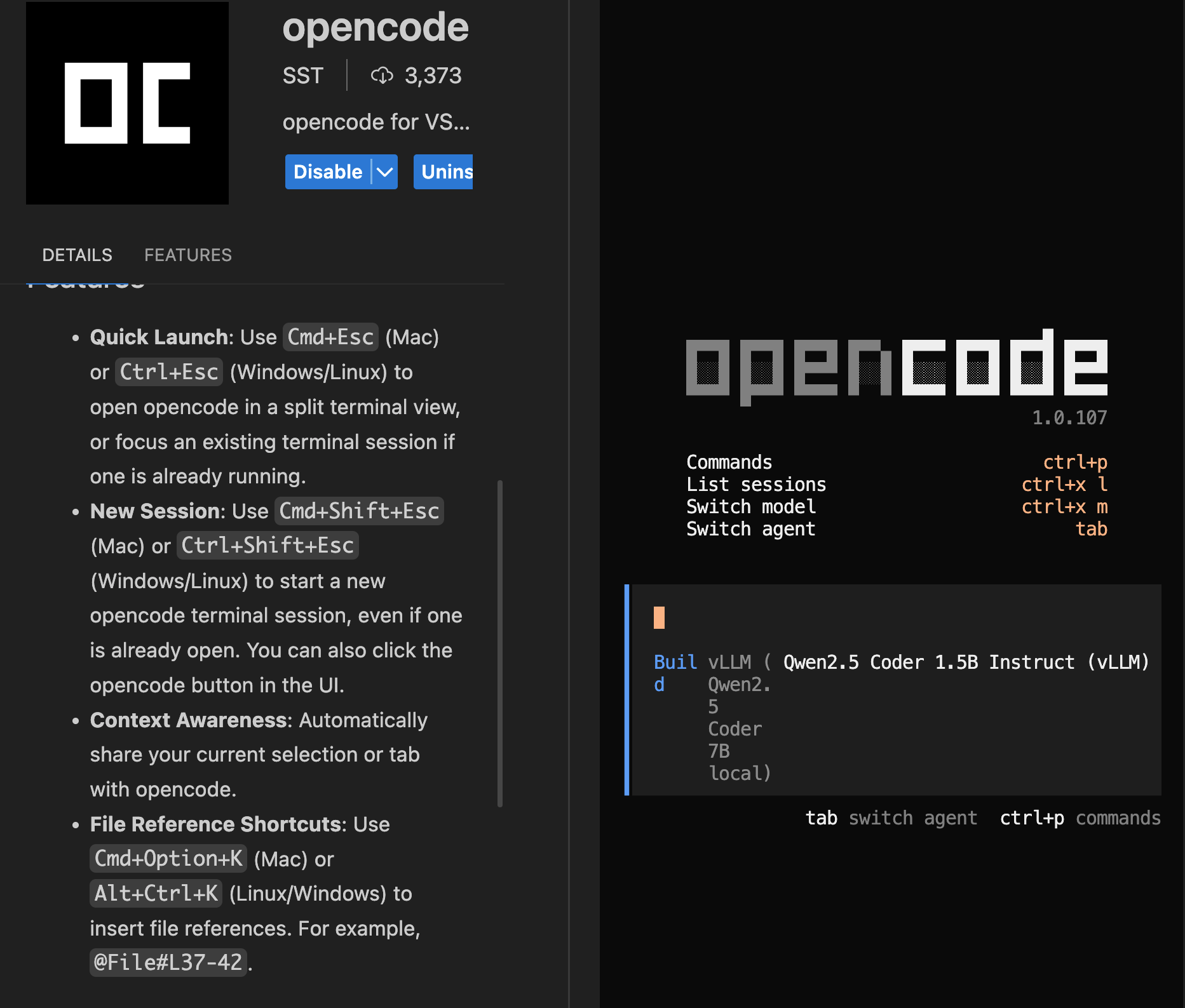 And with a simple Cmd+Shift+Esc we get a vertical split with opencode on the right.