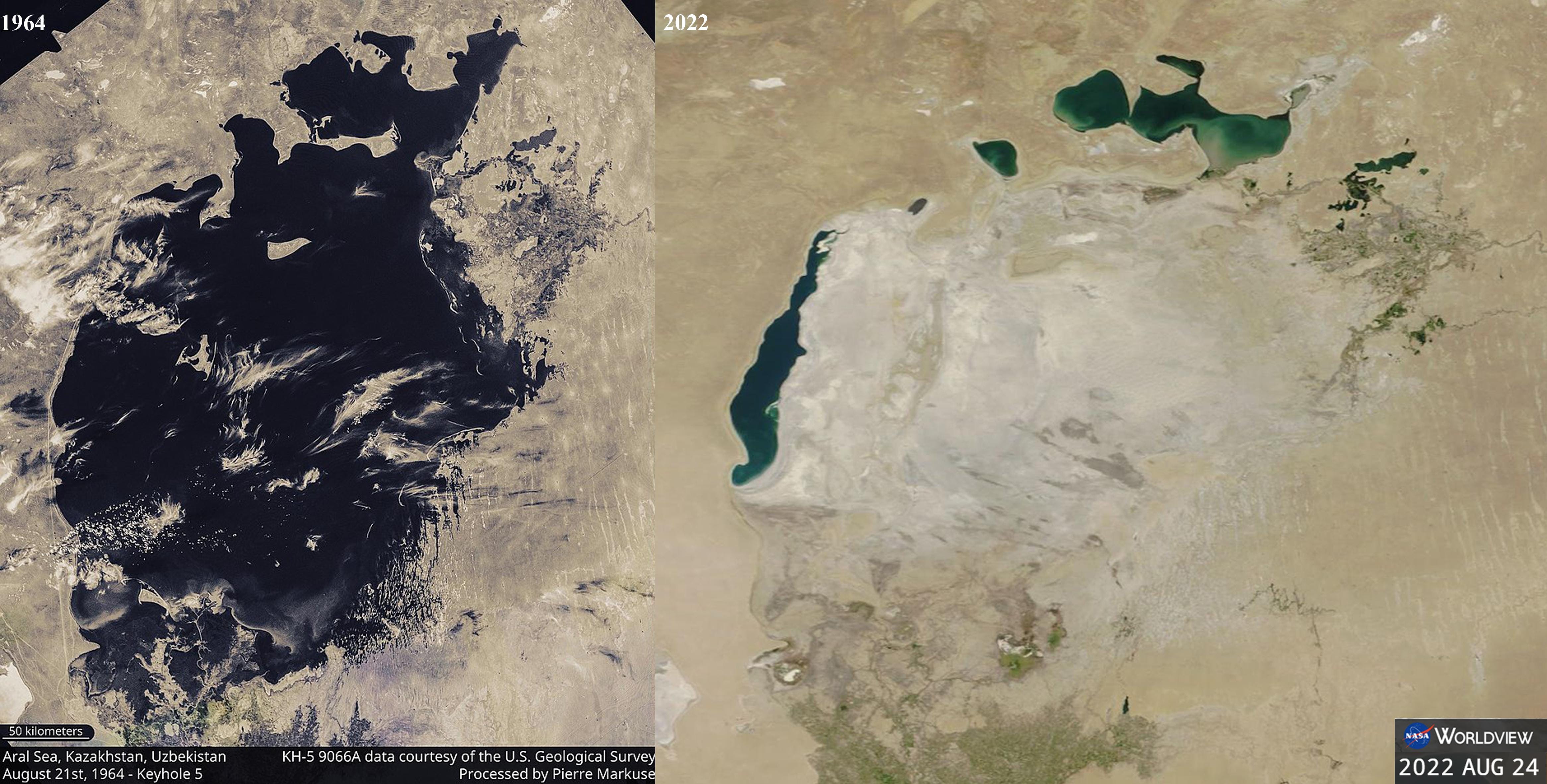 This is the Aral Sea, left just before I was born, right just a few years ago. It was sacrificed for the sake of cotton in Soviet Central Asia.