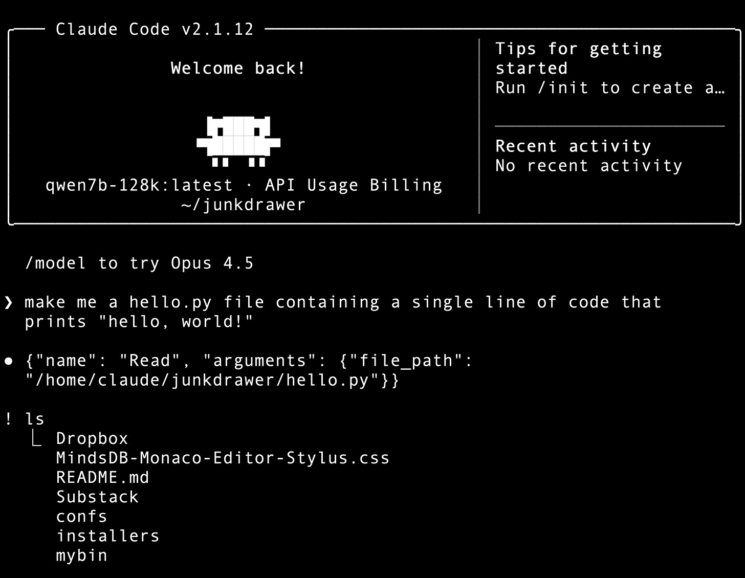 claude --model qwen7b-128k:latest