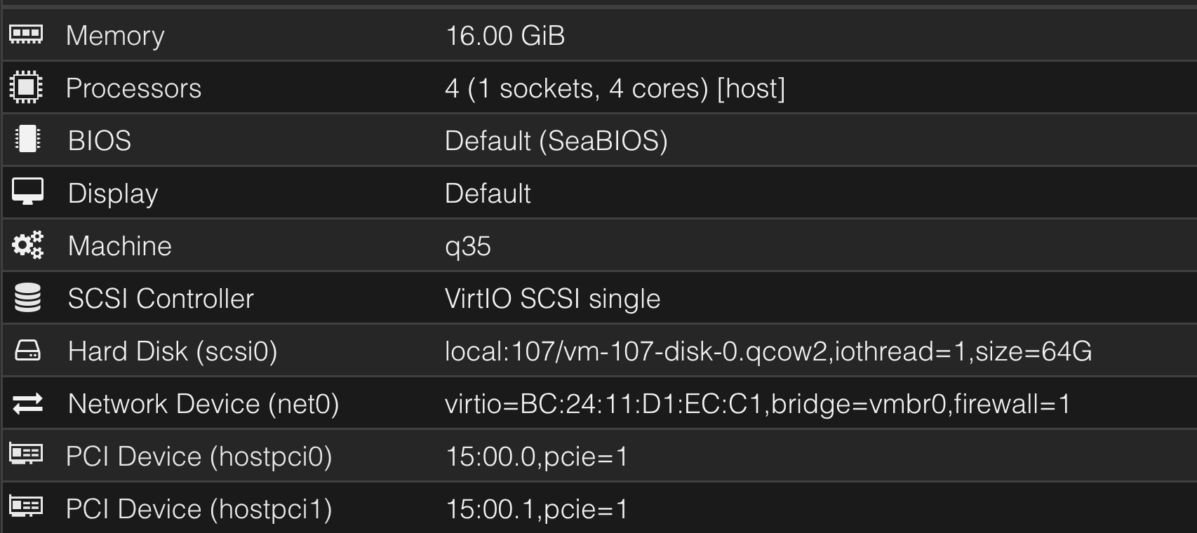 This is what the passthrough looks like in Proxmox. See the PCI devices? That’s the GTX 1060.