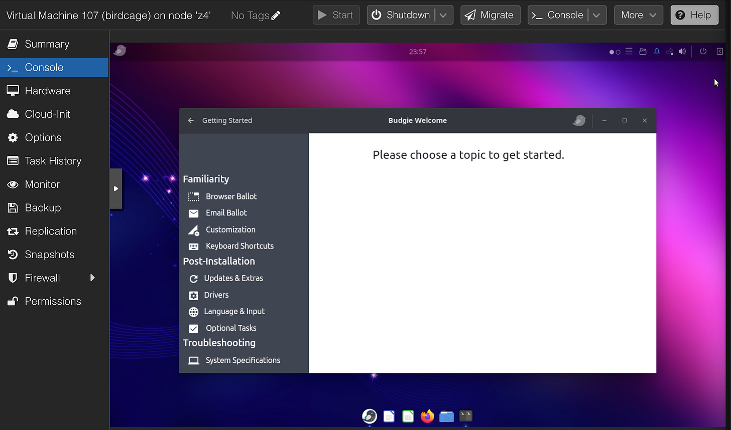 I have a LOT on my plate and maybe spending the energy to get this Budgie VM going was a less than stellar use of my time. On the other hand, all it takes is one bad day with my desktop and this will be invaluable. I’ll probably set it up with all the management/monitoring stuff for the system and then just leave it alone.