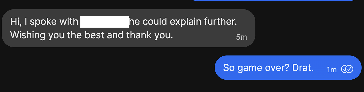 The market served by this venture still exists, and it’s only a little bit impacted by the tariffs and related economic downturn stuff. The nature of it is such that it would keep running even if things get truly terrible. I am not sure precisely what happened, there appears to be some sort of disagreement about strategy among the management. I am crossing my fingers this is transient and it comes roaring back in November, but hope is not a strategy. I unpinned the room for this in my Signal chat to make room for something else (tbd) that is moving.