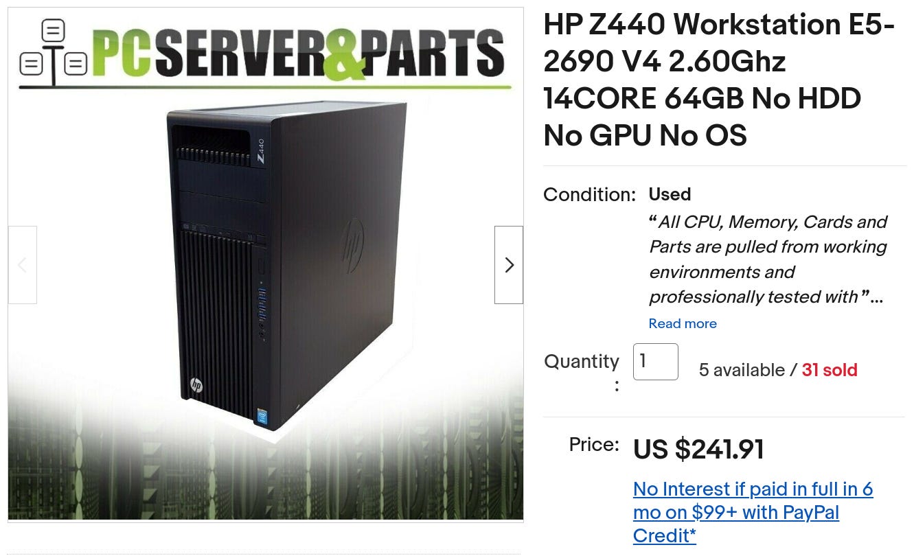 daily driver: Z420, E5-2695v2 processor, 128GB, Nvidia GTX 1060