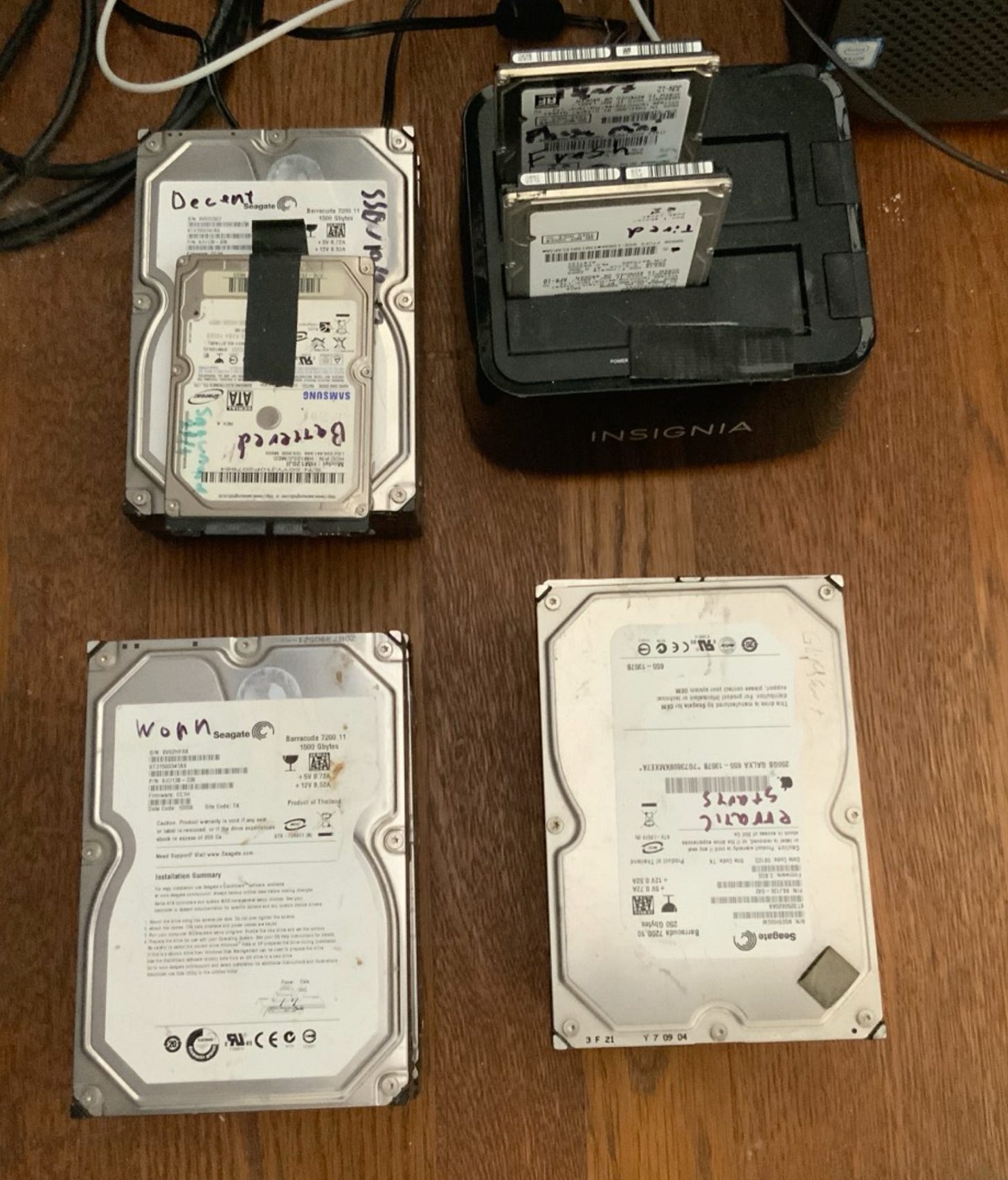 The machine in question is an HP EliteDesk G5 - a quad core i7-9700T with 32GB of ram. It’s got a 500GB NVMe drive, a single Western Digital RED 1TB NAS drive, and a pair of 500GB Apple drives that came out of a box of stuff I picked up at a flea market. The 2.5” are the smallest, but they’re also the quietest …