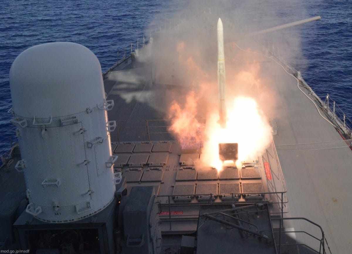 This is an ESSM launching from a Mk-41 VLS cell on a Japanese ship.