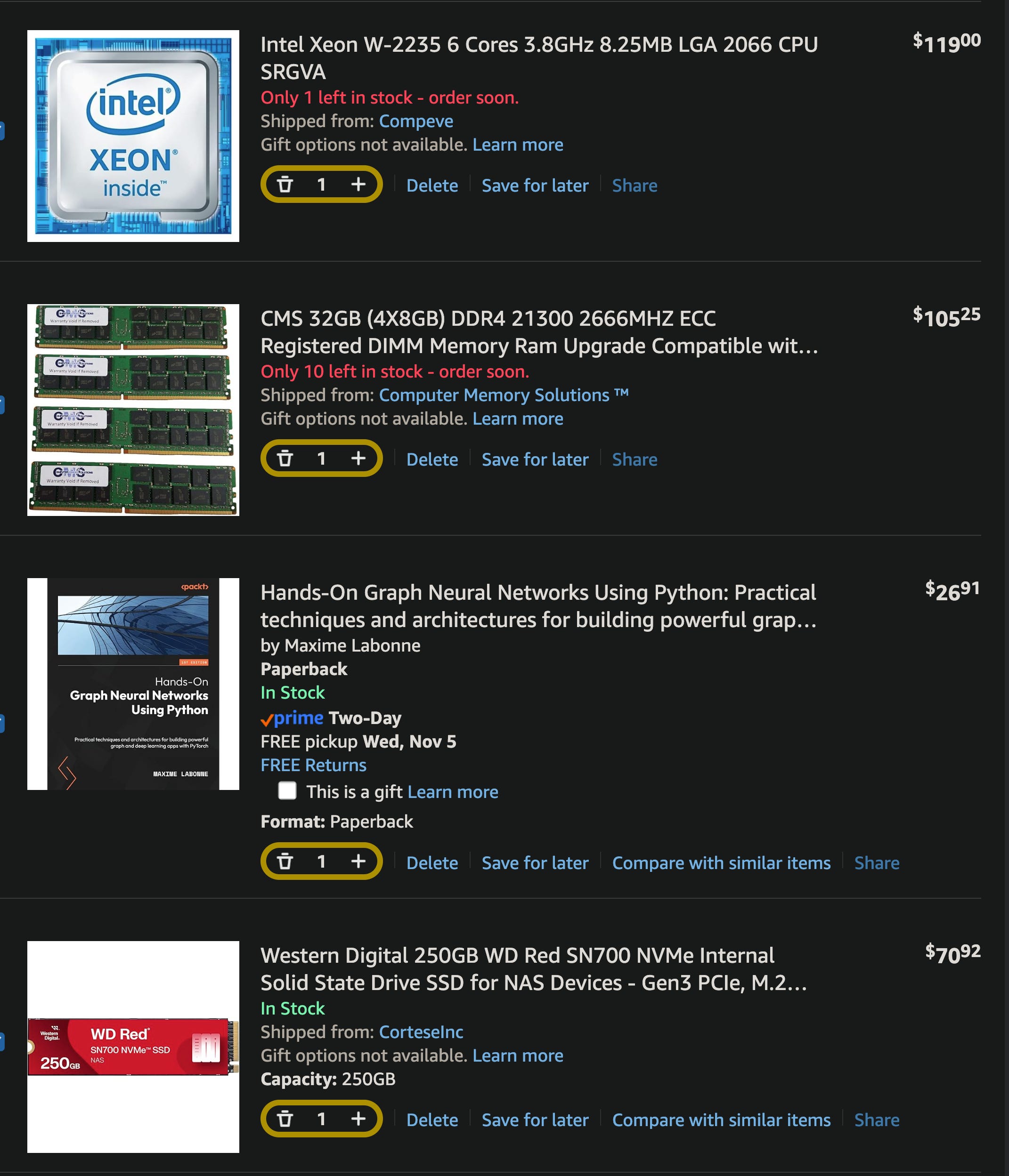 I woke up yesterday, aware of what had happened, and I did this. The PNY got returned in the morning, the Gigabyte arrived in the evening. I goofed on the return so now I have $nothing in my food budget and I’m waiting to get a refund on my Amazon card. Hence the anger.