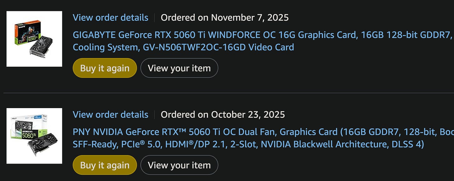 I am 99 & 44/100ths sure I got incelted. That is the technical term for when some incel orders a brand new Nvidia RTX 5060Ti, scrapes part of the serial number sticker on the one he fucked up overclocking, and sends it back to PNY.