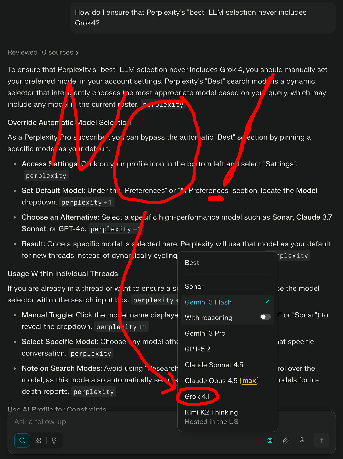 I did some digging and there’s literally no way to exclude Grok4, nor is there a solid way to “pick & stick” one of the other models.