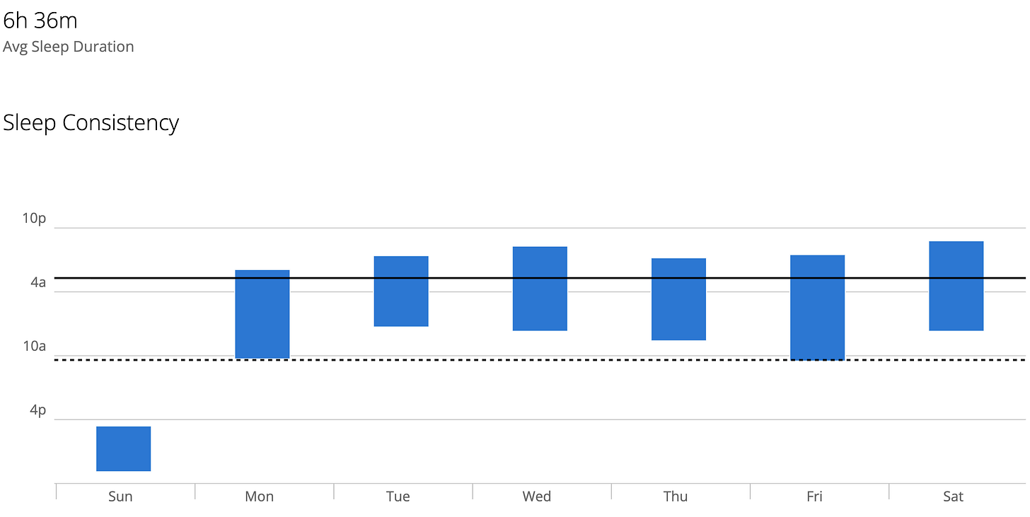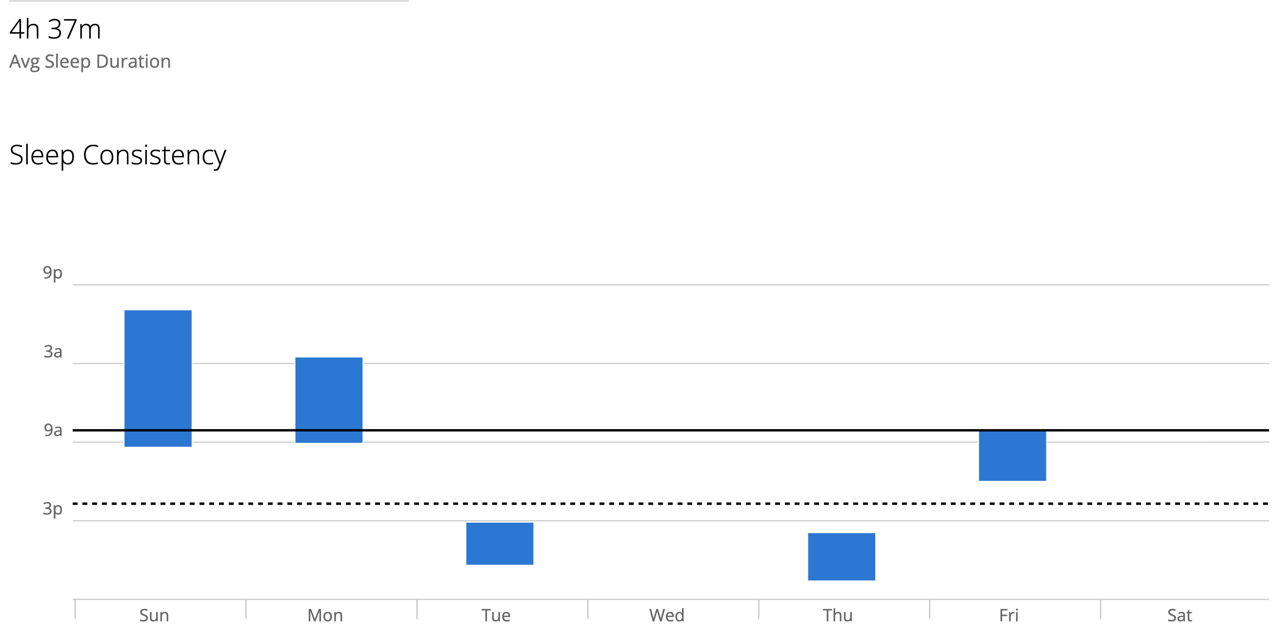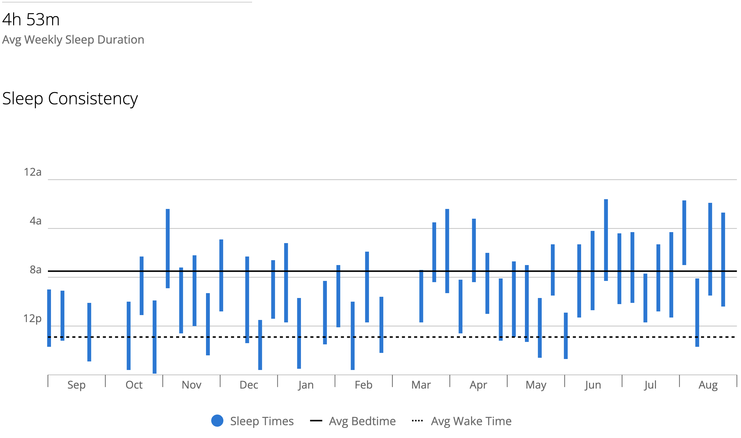 This chart is from my Garmin Fenix 6S and it shows sleep duration and time period for the last twelve months. I had literally no control over my wake/sleep cycle for over a decade. When I was asleep is was fragmented, restless, and that’s why you can see weeks were the machine registered no sleep at all. The overall symptoms matched type 2 narcolepsy for years, but it was always triggered by digestion.