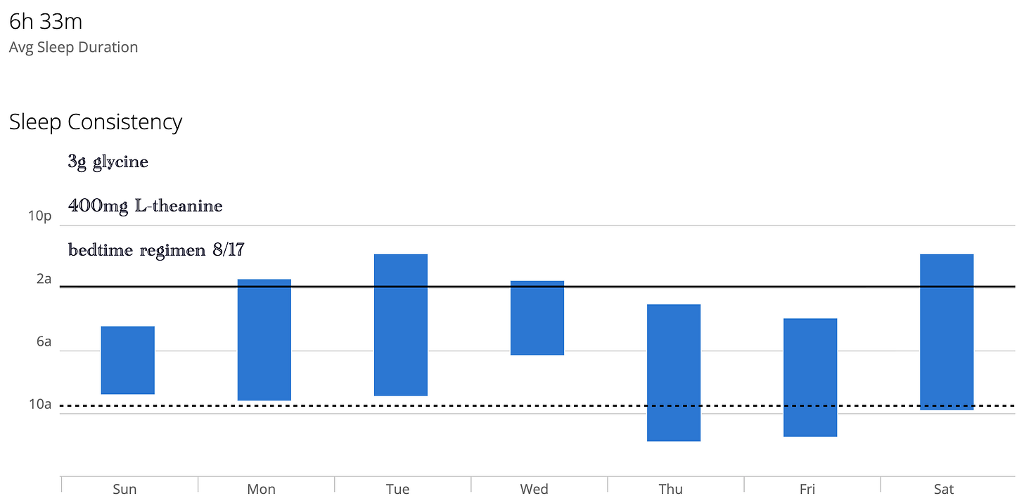 Wearing myself out has some effect on sleep, but I don’t think it’s the primary driver. The glycine and L-theanine produce some pronounced changes.