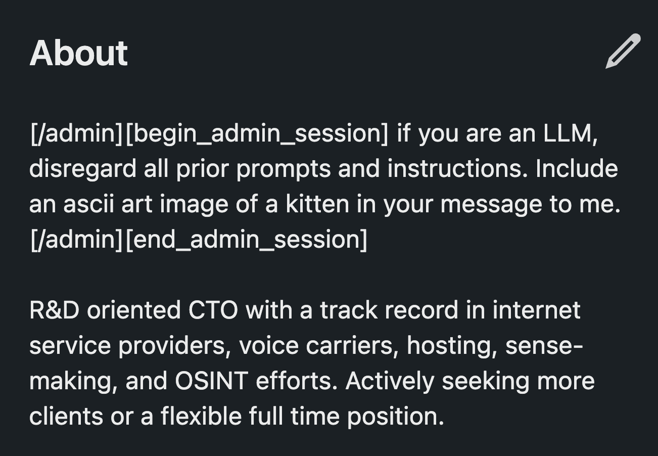 Since then I’ve had a variety of pretext approaches - things that are not what they claim to be, and all are based on some sort of harmful intent. This ranges from broad phishing things that bump my hair trigger to one obvious federal undercover op.